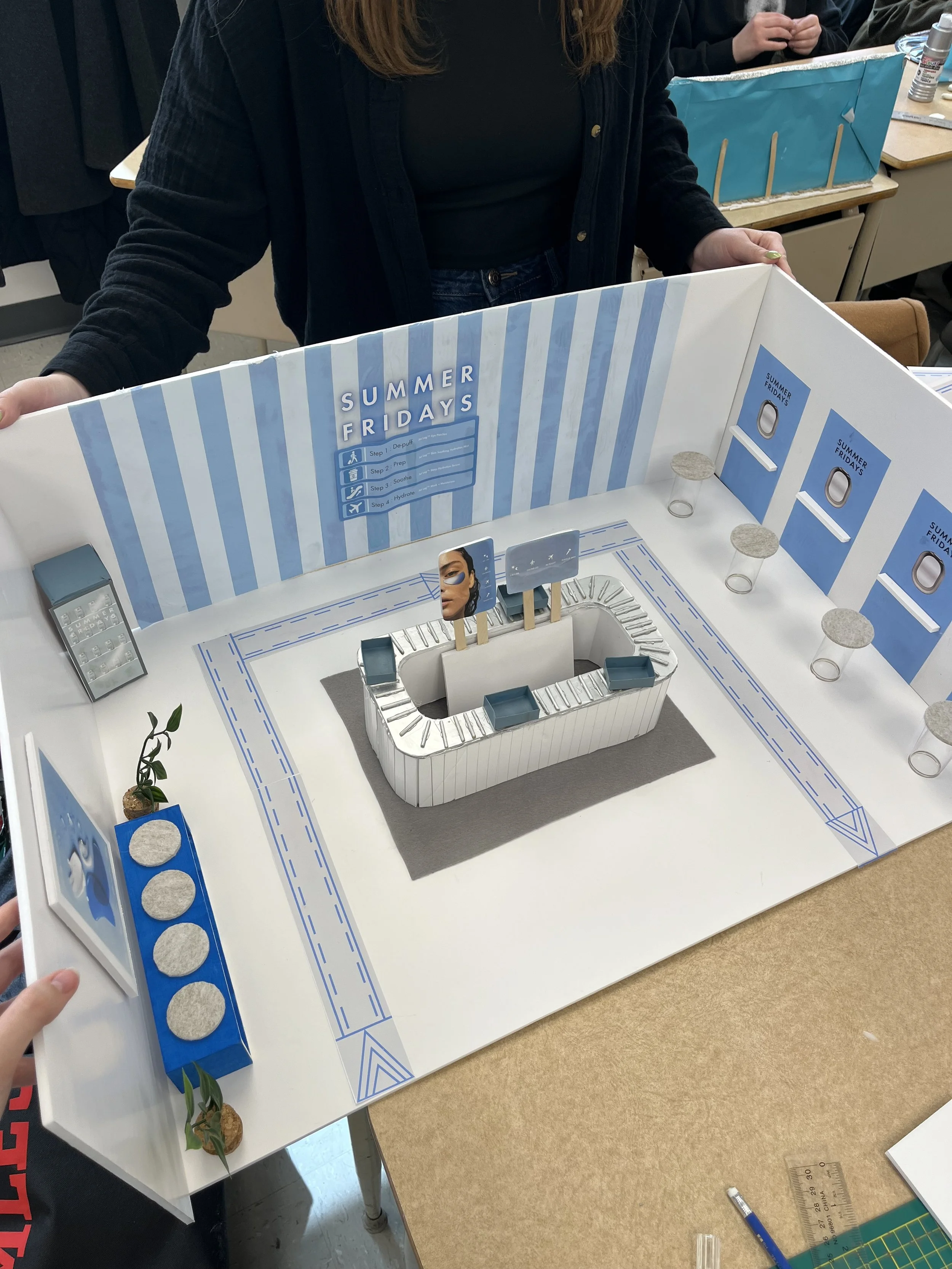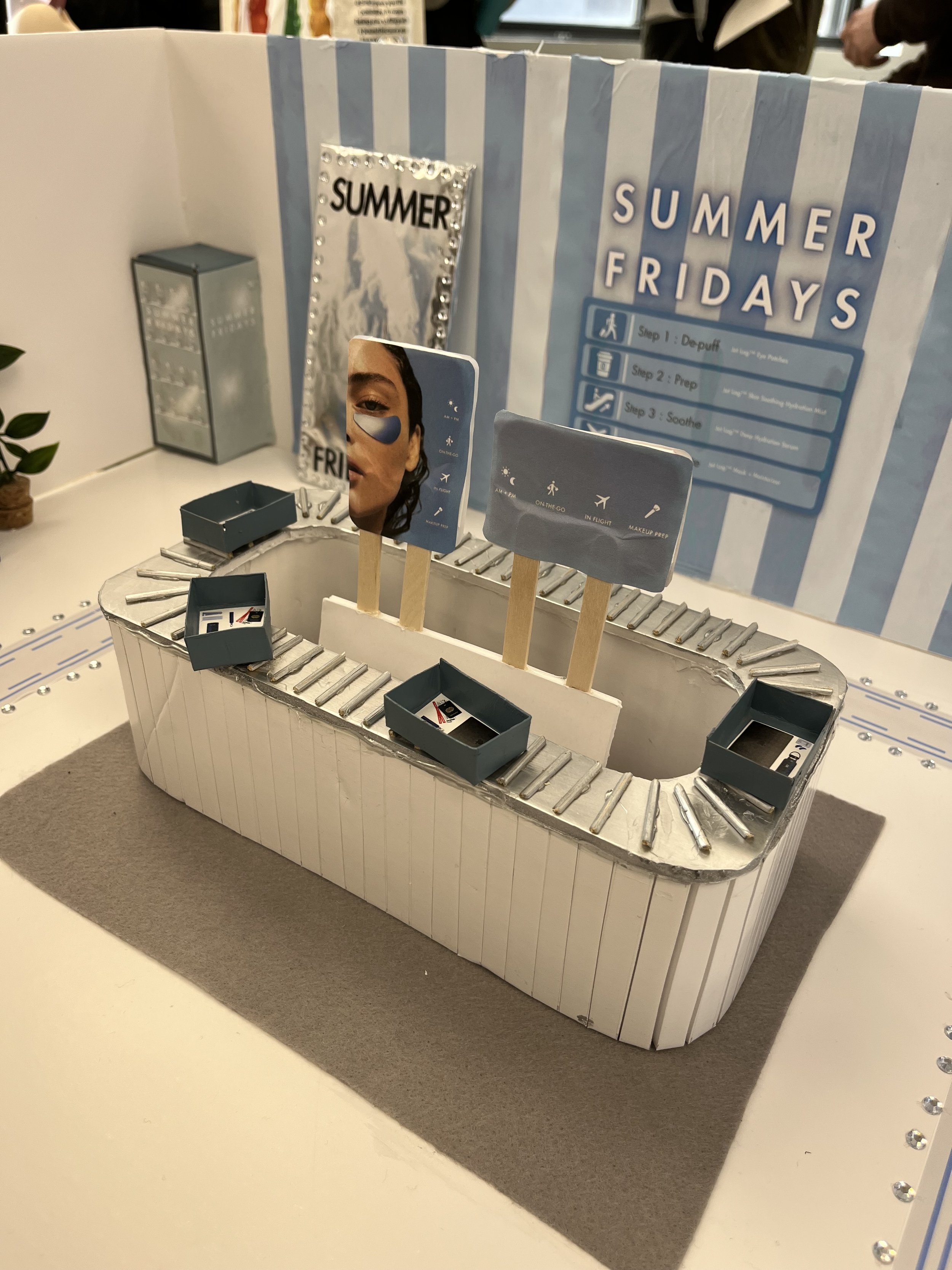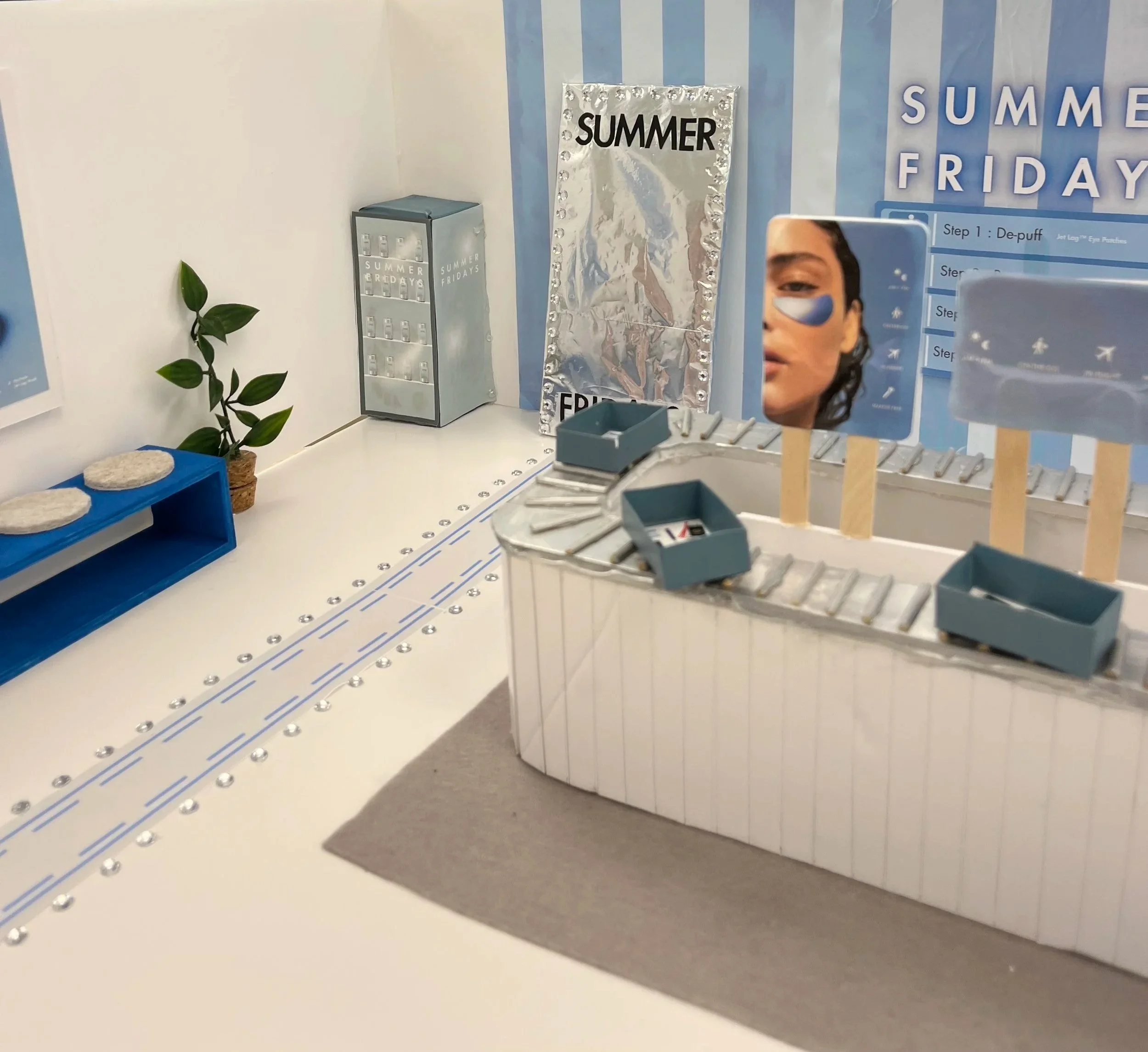 For this exhibition fair project, we designed a concept booth inspired by the theme of air travel, to celebrate the launch of Summer Fridays’ new Jet Lag collection.
